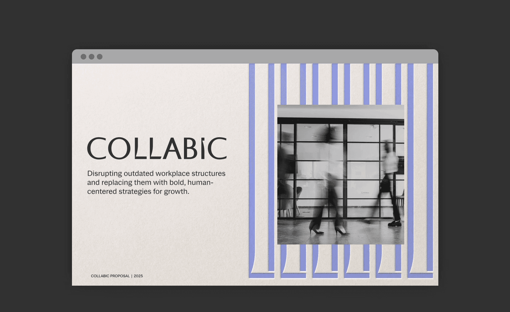 I served as the Lead Designer for Collabic, guiding the project from early strategy through final delivery. I facilitated workshops, 1:1s, and all client-facing presentations to align vision and direction. My work included developing a custom wordmark, logo system, and full brand identity that reflects Collabic’s professionalism, trustworthiness, and expertise in organizational development. The result is a clear, scalable brand that strengthens their credibility and presence.